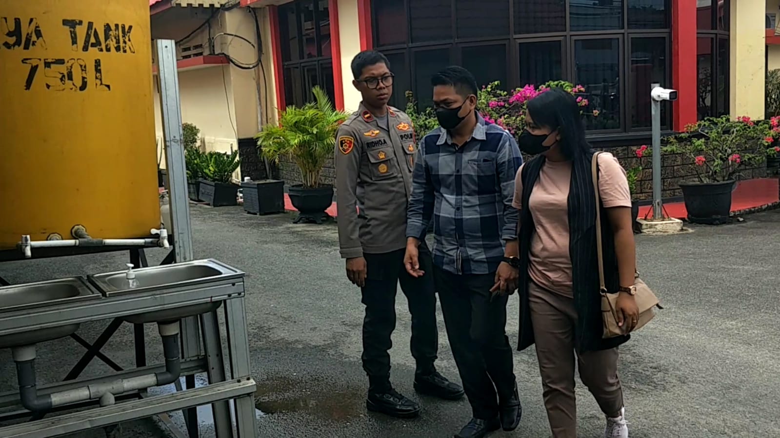 Markus Minggu datang ke polres Tarakan sekitar jam 11.58 wita menggunakan baju kotak-kotak ditemani oleh sang istri dan Ketua DPC PDI Perjuangan Edi Patanan.