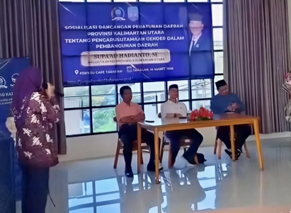 TARAKAN – Upaya memperkuat kesetaraan dalam pembangunan daerah terus didorong DPRD Kalimantan Utara. Salah satunya melalui sosialisasi Rancangan Peraturan Daerah (Ranperda) tentang Pengarusutamaan Gender yang digelar oleh anggota DPRD Kaltara dari Partai NasDem, Supa’ad Hadianto.