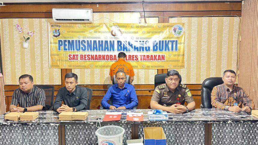 TARAKAN – Kepolisian Resor (Polres) Tarakan, Kalimantan Utara, melakukan pemusnahan barang bukti narkotika jenis sabu-sabu dari dua kasus penyalahgunaan obat terlarang yang melibatkan tersangka SY dan SU alias Rudi. Proses pemusnahan ini digelar setelah barang bukti selesai diuji laboratorium dan dinyatakan siap dimusnahkan sesuai ketentuan hukum yang berlaku.