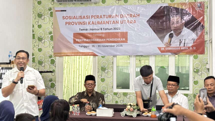 TARAKAN – DPRD Provinsi Kalimantan Utara menggelar sosialisasi Peraturan Daerah (Perda) tentang Penyelenggaraan Pendidikan yang menekankan pentingnya akses pendidikan berkualitas dan pemerataan kesempatan melalui program beasiswa daerah pada Jumat (28/11/25).
