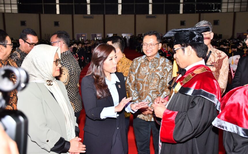 JAKARTA – Menteri Komunikasi dan Digital RI Meutya Hafid menghadiri Sidang Terbuka Senat Wisuda Telkom University Periode II Tahun Akademik 2025/2026 yang digelar di Telkom University Convention Hall, Bandung, Sabtu (25/4).